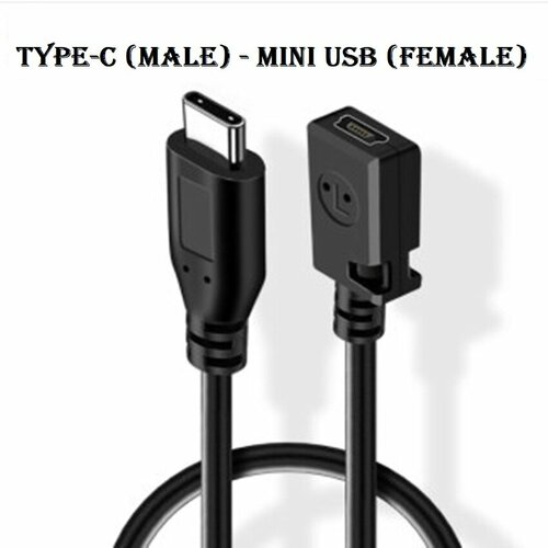 Короткий провод кабель для камеры USB type C / Mini USB (male - мама), Прямой штекер, 30 см, черный
