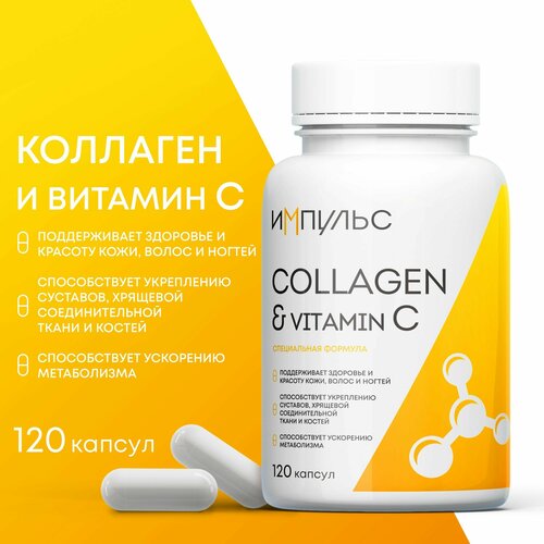 Коллаген в капсулах с витамином C (ц) Специальная формула Импульс (коллаген для лица, кожи, суставов и связок)