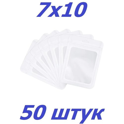 Zip-lock пакет металлизированный с застежкой и окошком 50 шт 7*10 см , белые