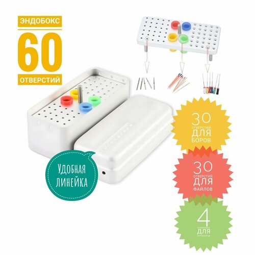 Эндобокс-Подставка DevonHealth(TYPE 64H) для стерилизации и хранения , удобства сортировки 64 инстр(30 боров, 30 файлов и гуттаперчи, с крышкой ).