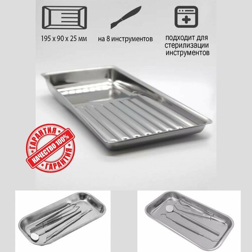 Incidental-Лоток д/инструментов на 8 предметов 195х90х25 - Прямоугольный лоток из нержавеющей стали , для дезинфекции и хранения инструмента. от Dentalrus