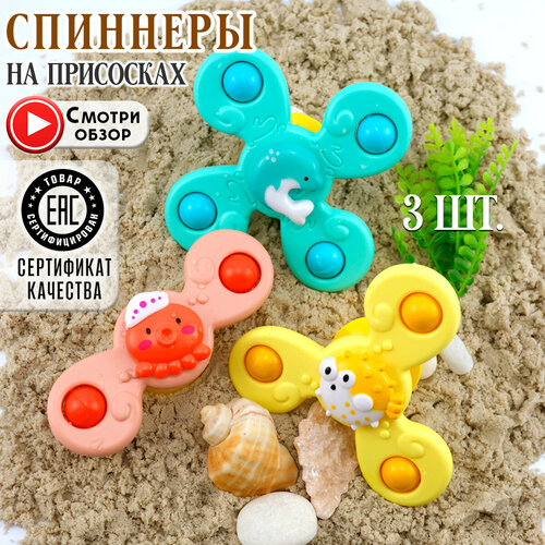 Игровой набор для малышей / Симпл Димпл / Спинер / На присосках 3 шт в комплекте / Для ванной / Для улицы / Для дома