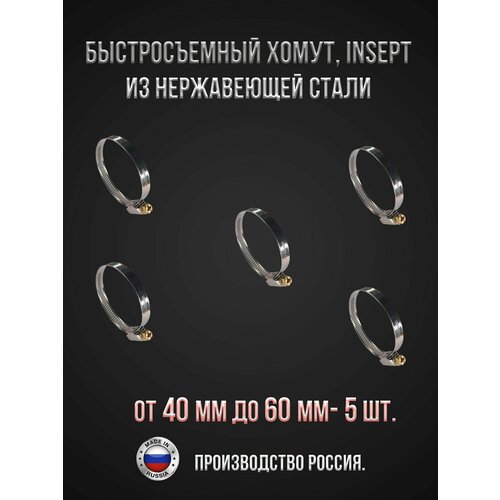 Хомут червячный из нержавеющей стали под отвертку / набор хомутов нержавейка 40-60 мм INSEPT 5 шт