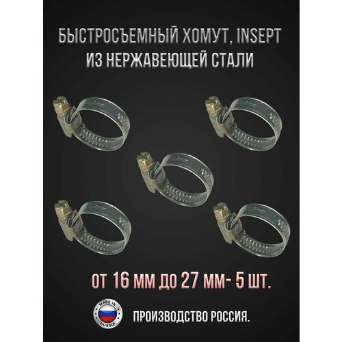 Хомут червячный из нержавеющей стали под отвертку / набор хомутов нержавейка 16-27 мм INSEPT 5 шт