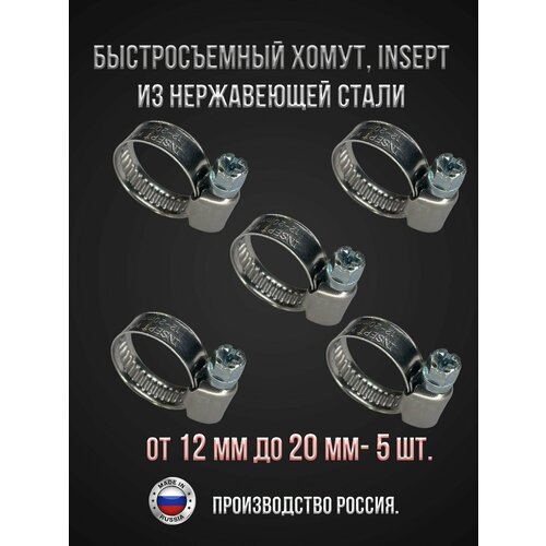 Хомут червячный из нержавеющей стали под отвертку / набор хомутов нержавейка 12-20 мм INSEPT 5 шт