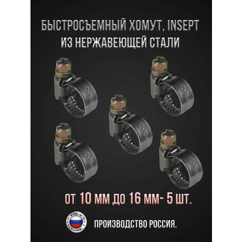Хомут червячный из нержавеющей стали под отвертку / набор хомутов нержавейка 10-16 мм INSEPT 5 шт