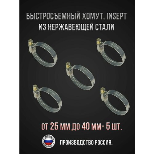 Хомут червячный из нержавеющей стали под отвертку / набор хомутов нержавейка 25-40 мм INSEPT 5 шт