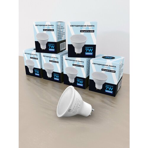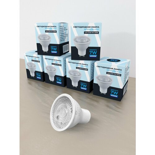 Светодиодная лампа Interiorlight GU10, 7Вт, 4000К (дневной белый), тип рассеивателя линза, 560lm, 10 штук
