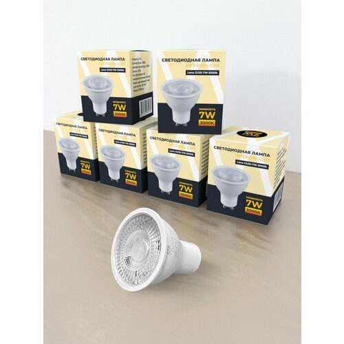 Светодиодная лампа Interiorlight GU10, 7Вт, 3000К (теплый белый), тип рассеивателя линза, 560lm, 10 штук