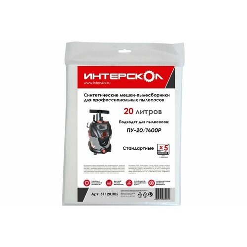 Мешок-пылесборник Интерскол для пылесоса ПУ-20/30/32/45, 30 л синтетический стандартный (5 шт)