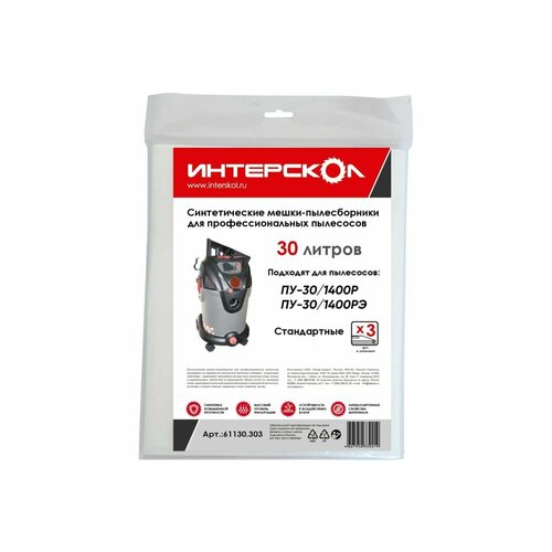 Пылесборный мешок Интерскол Мешки для пылесоса 30 л синтетические, стандартные 3 шт в упаковке