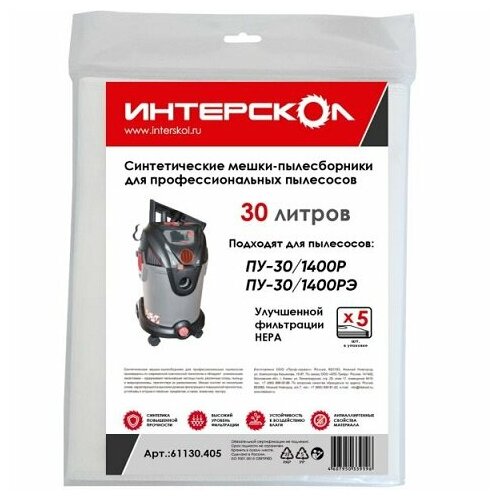 Мешок-пылесборник Интерскол 30л, улучшенной фильтрации (5 шт)