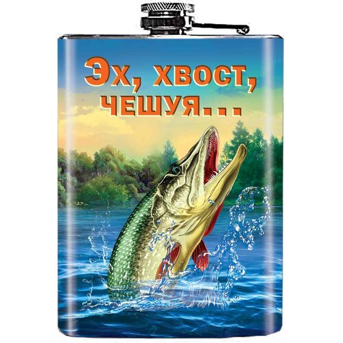 Фляжка подарок заядлому рыбаку Эх хвост
