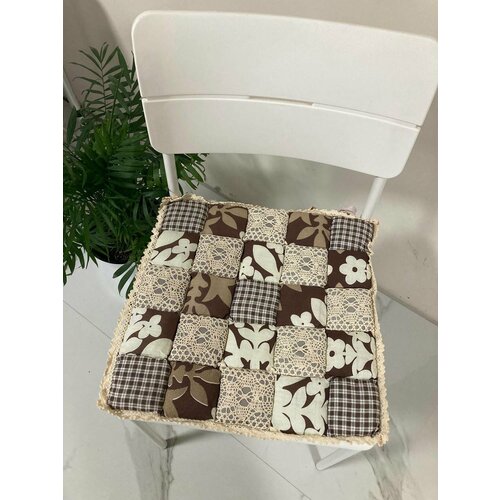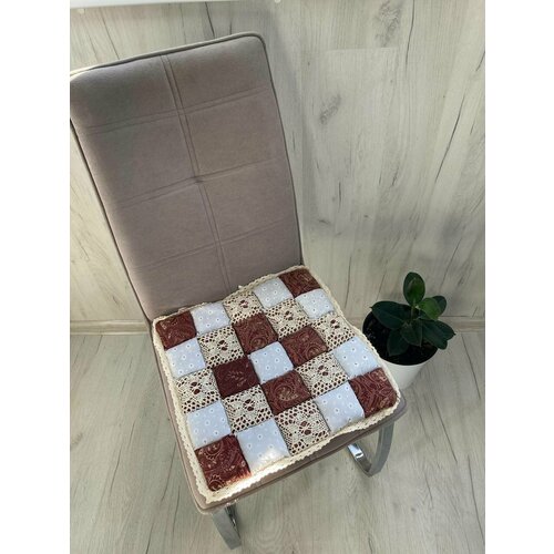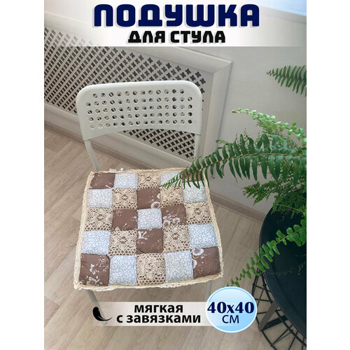 Подушка на стул Prize, мягкая, на завязках, На стул 40x40 см, коричневый-бежевый