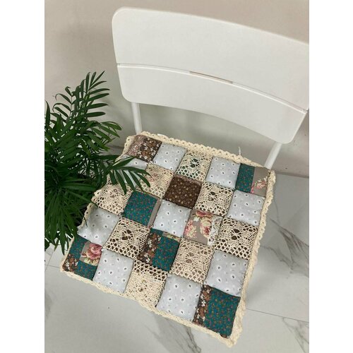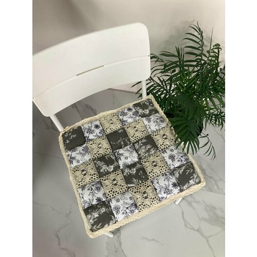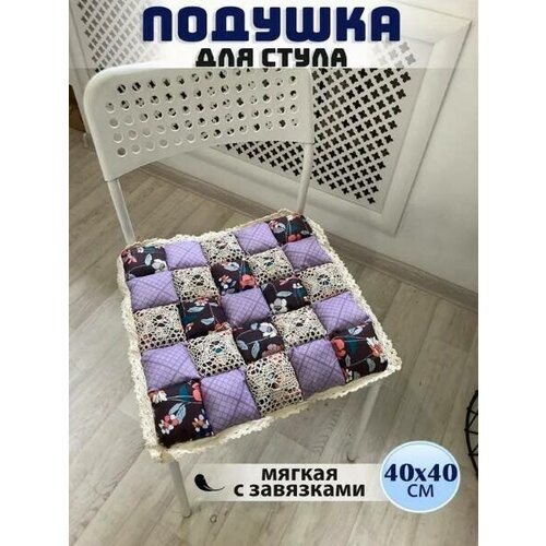 Подушка на стул, мягкая, на завязках, На стул 40x40 см, цветы