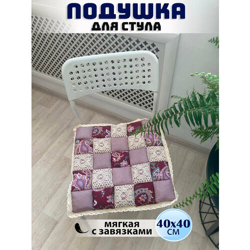 Подушка на стул Prize, мягкая, на завязках, На стул 40x40 см, розовый-бордовый