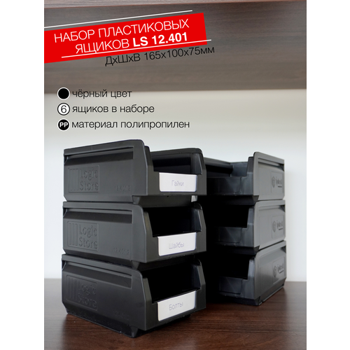 Складской лоток Logic Store 165x100x75мм, набор 6шт, чёрный