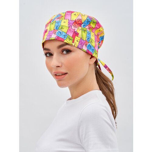Медицинский колпак с рисунком Цветные коты/ Шапочка медицинская / колпак для хирурга / головной убор для медика / шапка для анестезиолога