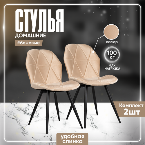Cтулья для кухни со спинкой, комплект 2 штуки, велюр