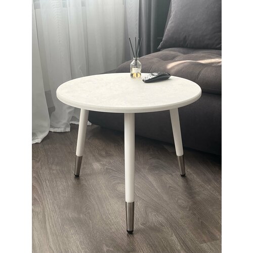 Журнальный столик, круглый, придиванный, прикроватный, кофейный, белый, лофт из мдф для ноутбука