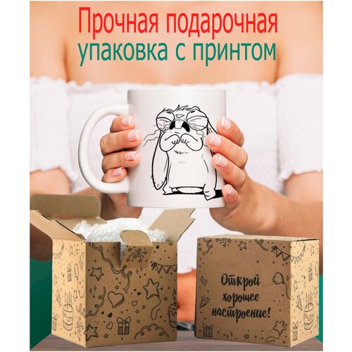 Кружка принт с картинкой сумасшедшего заяца в подарочной коробке