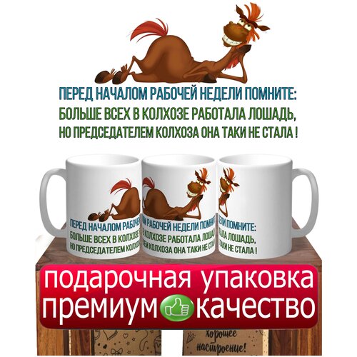 Кружка демотиватор Больше всех в колхозе работала лошадь