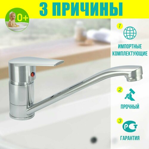 Смеситель для кухни Istok life Standard 0402.975, хирургическая ручка, излив 150 мм, хром