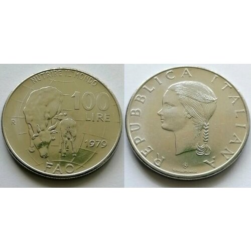 Монета 100 лир 1979 г. Италия. Корова с теленком. Единственный год выпуска.