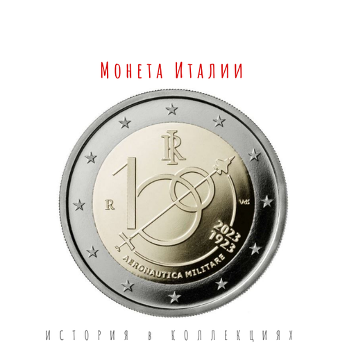 Италия 2 евро 2023 г. 100 лет военной авиации (ВВС) UNC