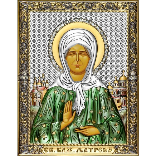 Икона Матрона Московская, 14х18 см, в окладе, на дереве