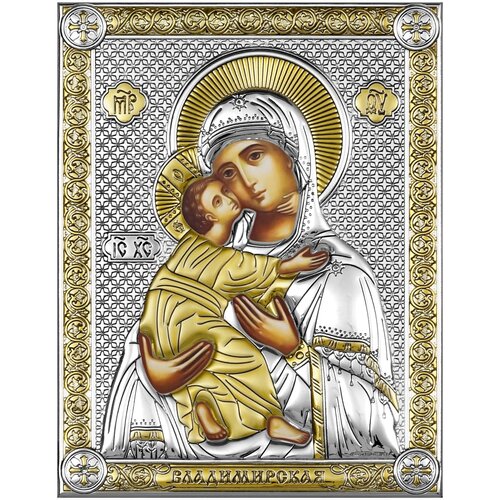Икона Владимирская Божия Матерь, 14х18 см, в окладе, на дереве