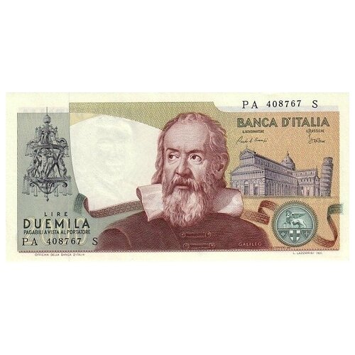 Италия 2000 лир 1983 г. /Галилео Галилей. Пизанская башня в Пизе/ UNC