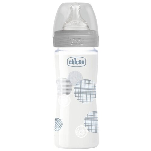 Chicco Бутылочка из стекла с соской из силикона Well-Being GL, 240 мл new, с рождения, серый