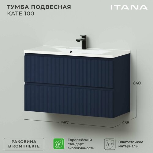Тумба c раковиной в ванную, тумба для ванной Итана Kate 100 987х438х640 подвесная Океания