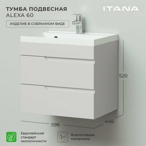 Тумба под раковину подвесная Итана Alexa 60 596х446х520 Керамик // под умывальник мебельный Итана Clarissa 60