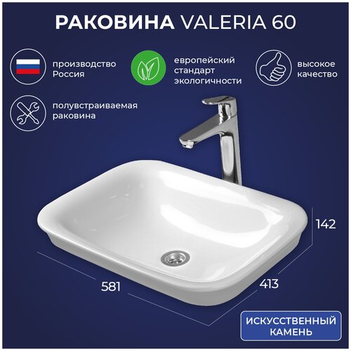 Раковина для ванной полувстраиваемая Итана Valeria 581х413х142