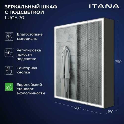Зеркало-шкаф с подсветкой Итана Luce 70 700х150х790 Графит