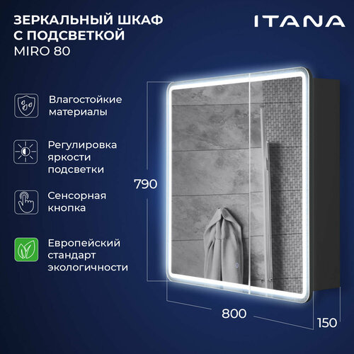 Зеркальный шкаф с подсветкой Итана Miro 80 800х150х790 Графит