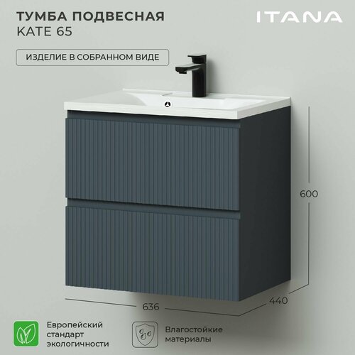 Тумба под раковину в ванную, тумба для ванной Итана Kate 65 636х440х600 подвесная Антрацит