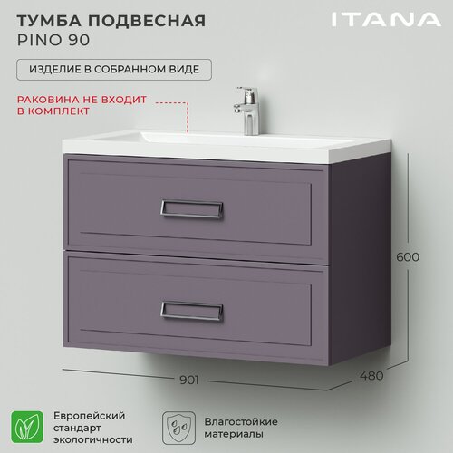 Тумба под раковину подвесная Итана Pino 90 901х480х600 Блэкберри // под Умывальник мебельный итана Alisa 90