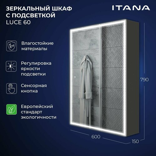 Зеркальный шкаф с подсветкой Итана Luce 60 600х150х790 универсальный Графит