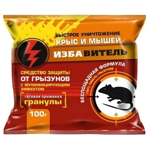 Средство Избавитель Гранулы от мышей и крыс с мумифицирующим эффектом, 100 гр 1 шт. 0.1 кг