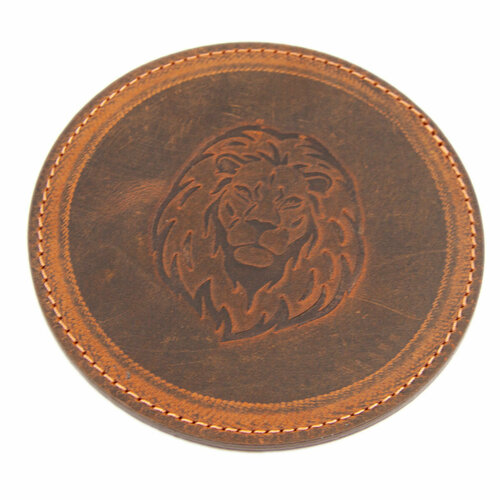 Кожаный подстаканник - бирдекель, подставка под кружку c тиснением "Лев", Frongoch Lion Brownee, J.Audmorr