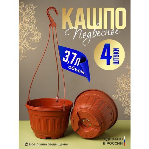 Кашпо для цветов "Афродита", 4 штуки, объем 3,7 литра, подвесное, матовое, с поддоном, пластик