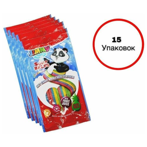 Жевательный мармелад JIMMY Panda разноцветные кислые ремешки, Набор- 15 штук, ассорти