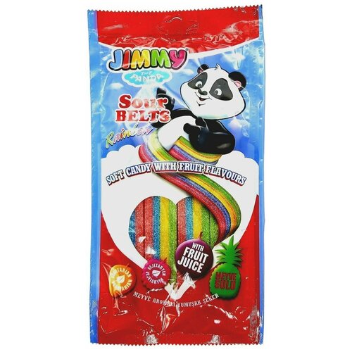 Жевательный мармелад JIMMY Panda разноцветные кислые ремешки, 1 штука- 75 гр, ассорти