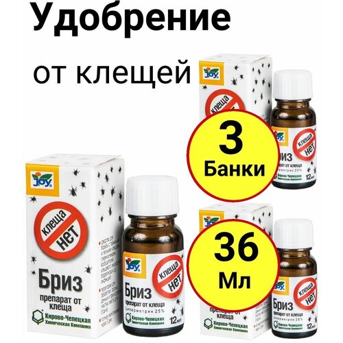 Препарат для обработки территории от клещей, клеща нет Бриз, 12мл, Джой - 3 банки