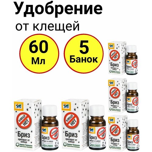 Препарат для обработки территории от клещей, клеща нет Бриз, 12мл, Джой - 5 банок