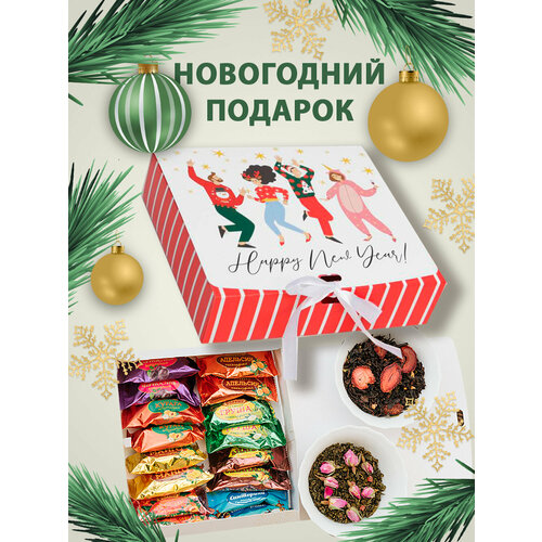 Подарочный набор конфеты ассорти и чай С новым годом