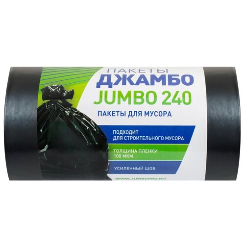 Пакеты для мусора JUMBO PRO 240 90x130см 60мкм, 10 шт/рул
